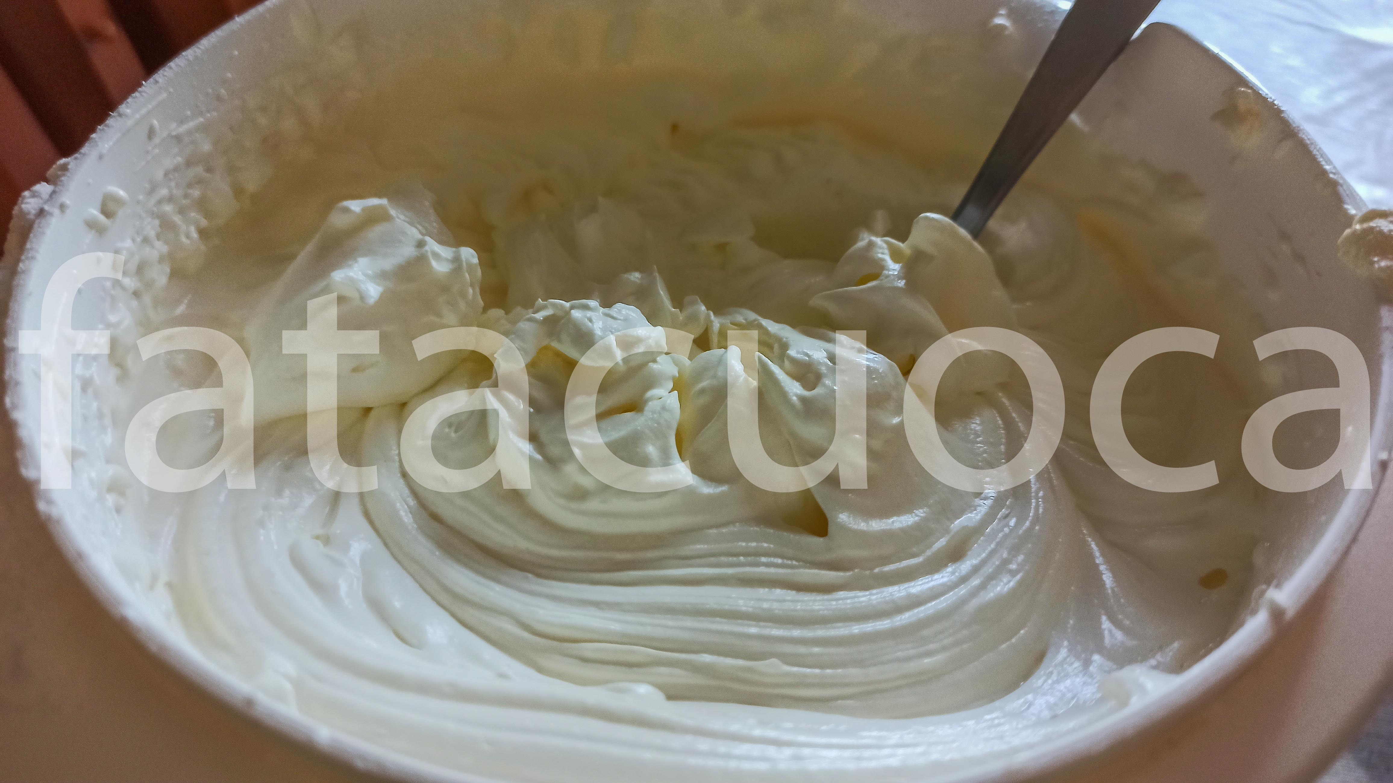 Procedimento: in una ciotola montare la panna con i semi di vaniglia e iniziate a montare aggiungendo lo zucchero a velo . Quando la panna sarà ben montata aggiungete il mascarpone poco per volta incorporandolo con movimenti dal basso verso l’alto per non smontare la panna.