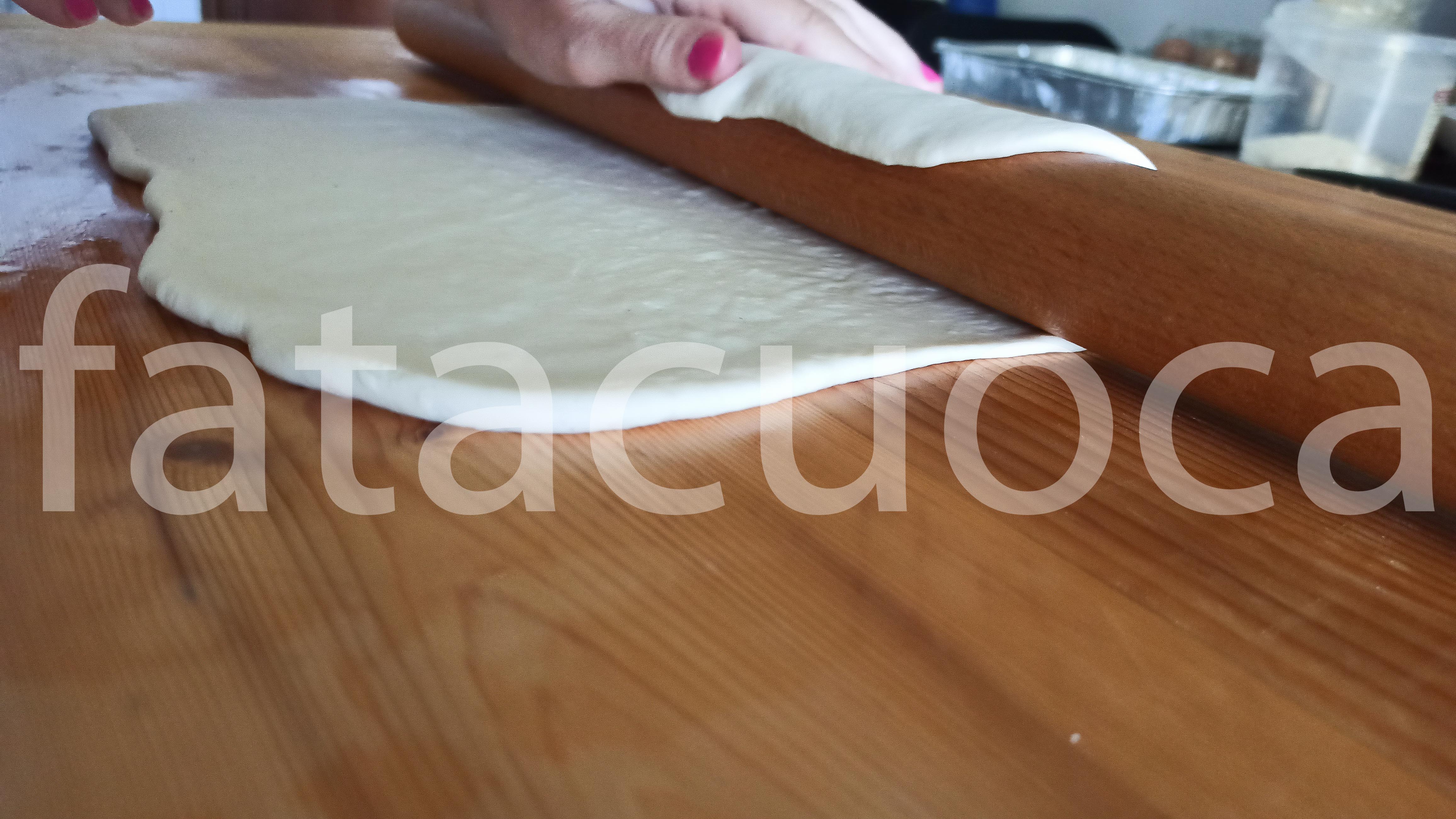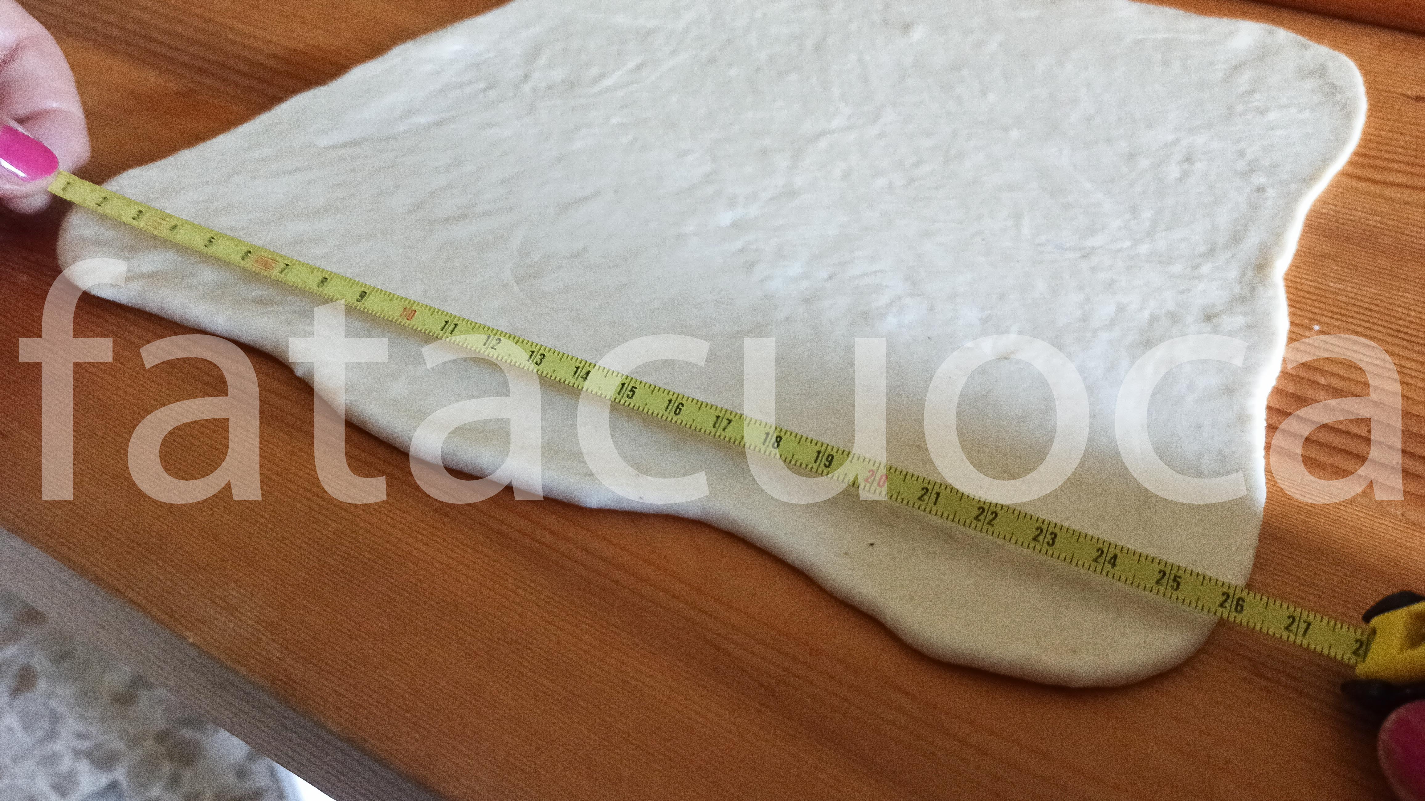 Lasciarlo lievitare un ora circa poi stenderlo in un rettangolo della misura di 26 per 30 cm