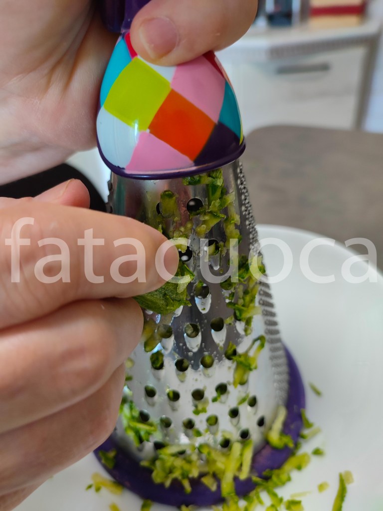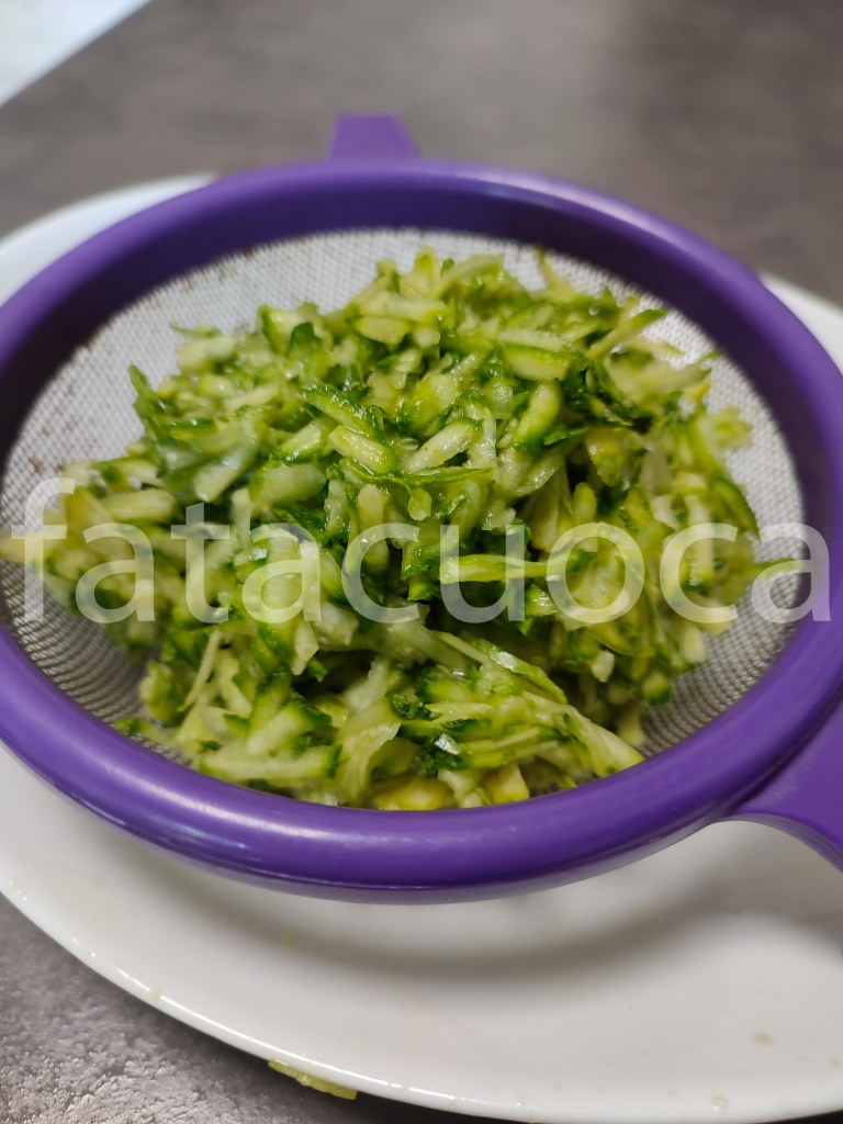 Grattugiare le zucchine in questo modo e lasciarle in un colino a sgocciolare 2 ore.