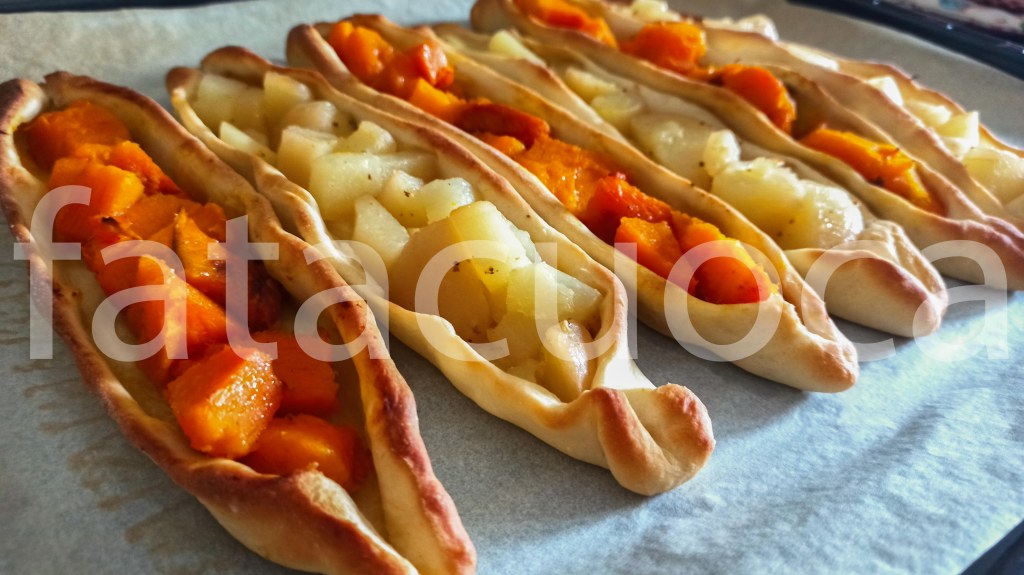 e con il mattarello creare delle lingue farcirle e chiudere l’impasto a barchetta