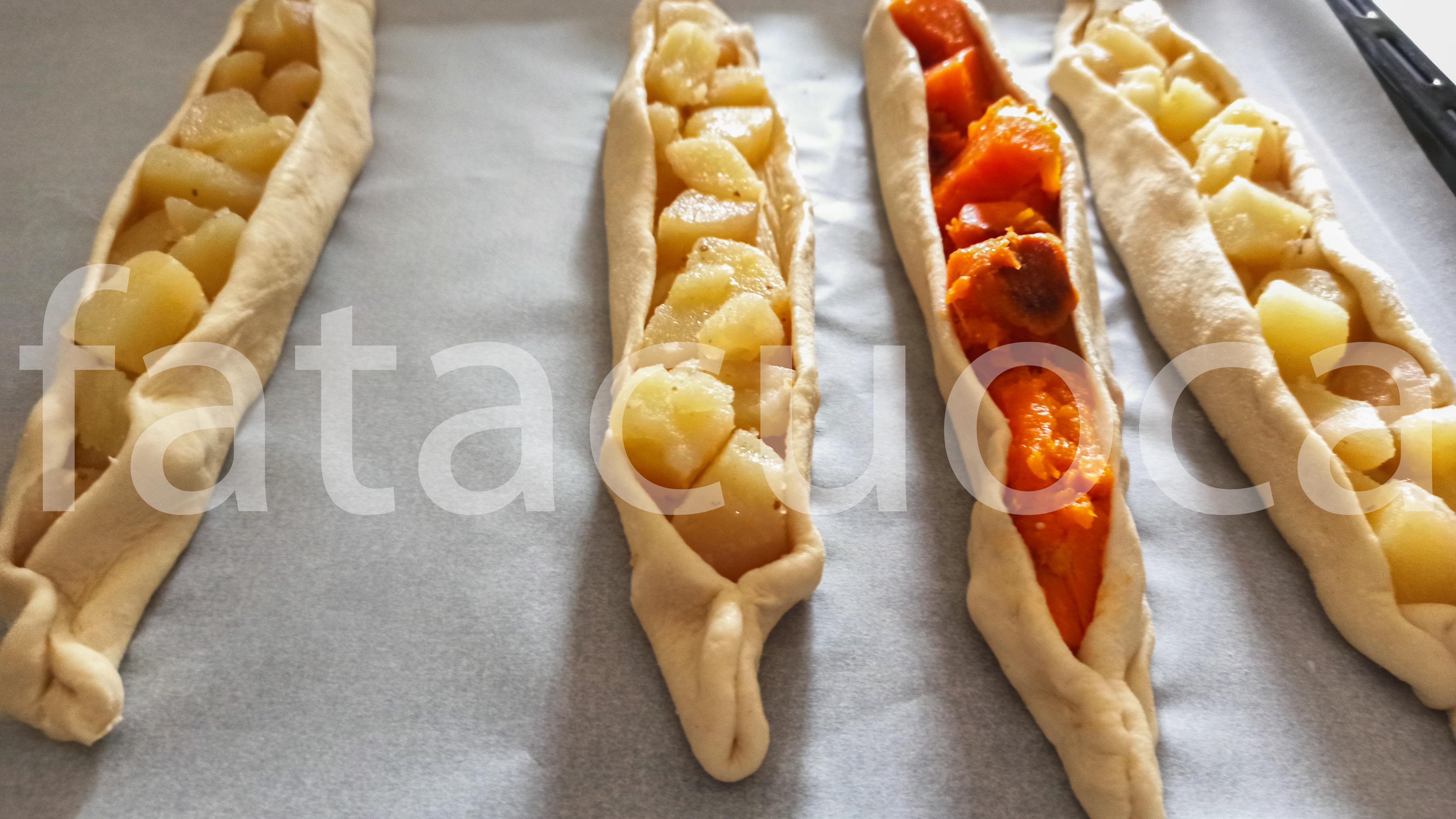e con il mattarello creare delle lingue farcirle e chiudere l’impasto a barchetta