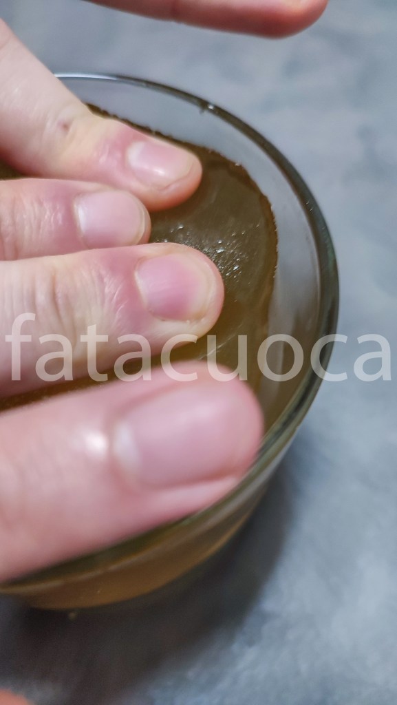 Ingredienti : 200 ml di acqua, zucchero 300 g, colla di pesce 120 g. Procedimento: bollire l’acqua con lo zucchero poi aggiungere i fogli ammollati in acqua fredda). Una volta pronta la gelatina versarne un po’ nel contenitore che si è deciso di usare per l’oggetto o in una vaschetta. LA GELATINA SI CONSERVA IN FREEZER E PUO’ ESSERE RIUTILIZZATA SCIOGLIENDOLA A BAGNO MARIA.