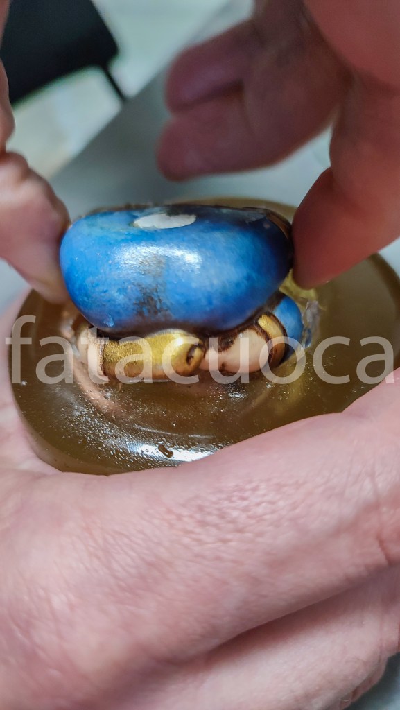 una volta asciugata io l’ho dipinta con colori specifici per il cioccolato sciolti in alcool ma sono molto belle anche neutre perchè più si asciuga più sembra una statuina vera e propria. Io prediligo il cioccolato bianco ma si possono utilizzare tutti i tipi di cioccolato fondente e al latte.