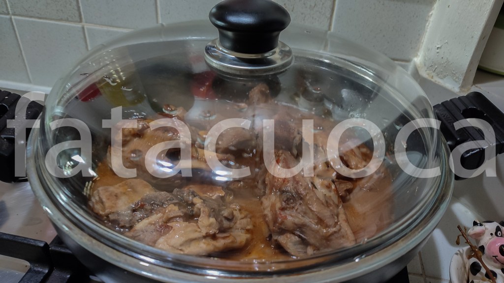 Quando bolle abbassare la fiamma e cuocere con coperchio per 45 minuti e 20 minuti scoperto.