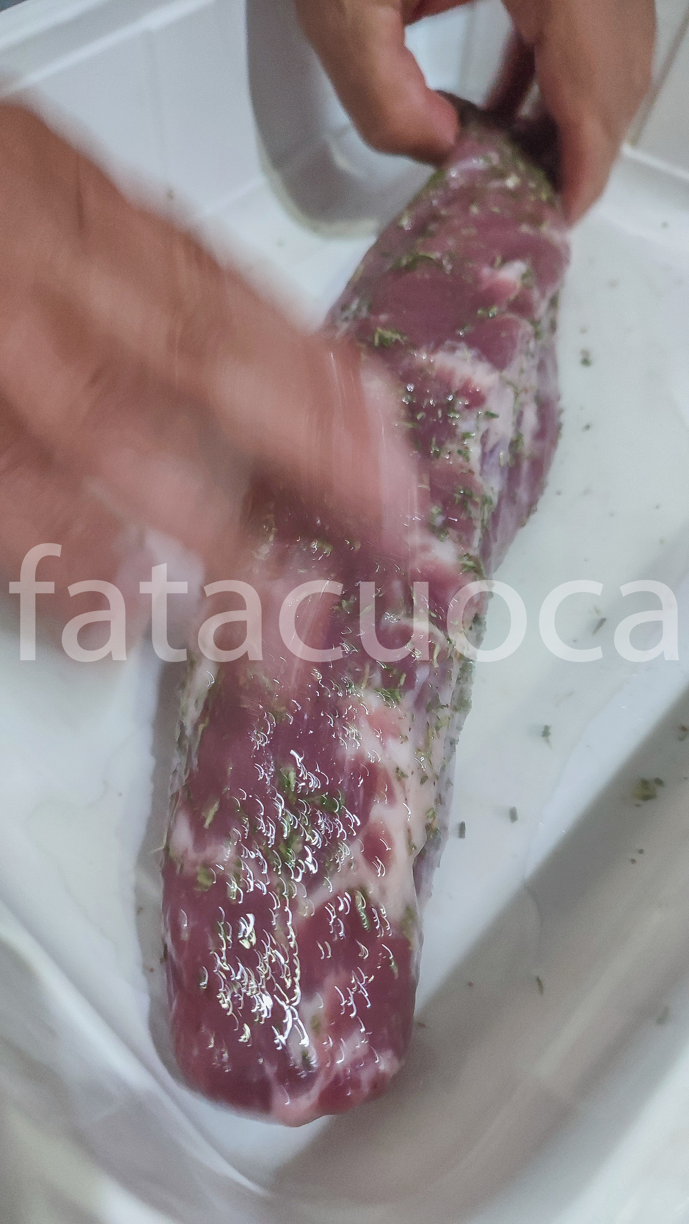 condirlo con il sale, il sale aromatico, il pepe e l’olio, massaggiarlo e lasciarlo riposare coperto anche 3 ore FUORI DAL FRIGORIFERO.