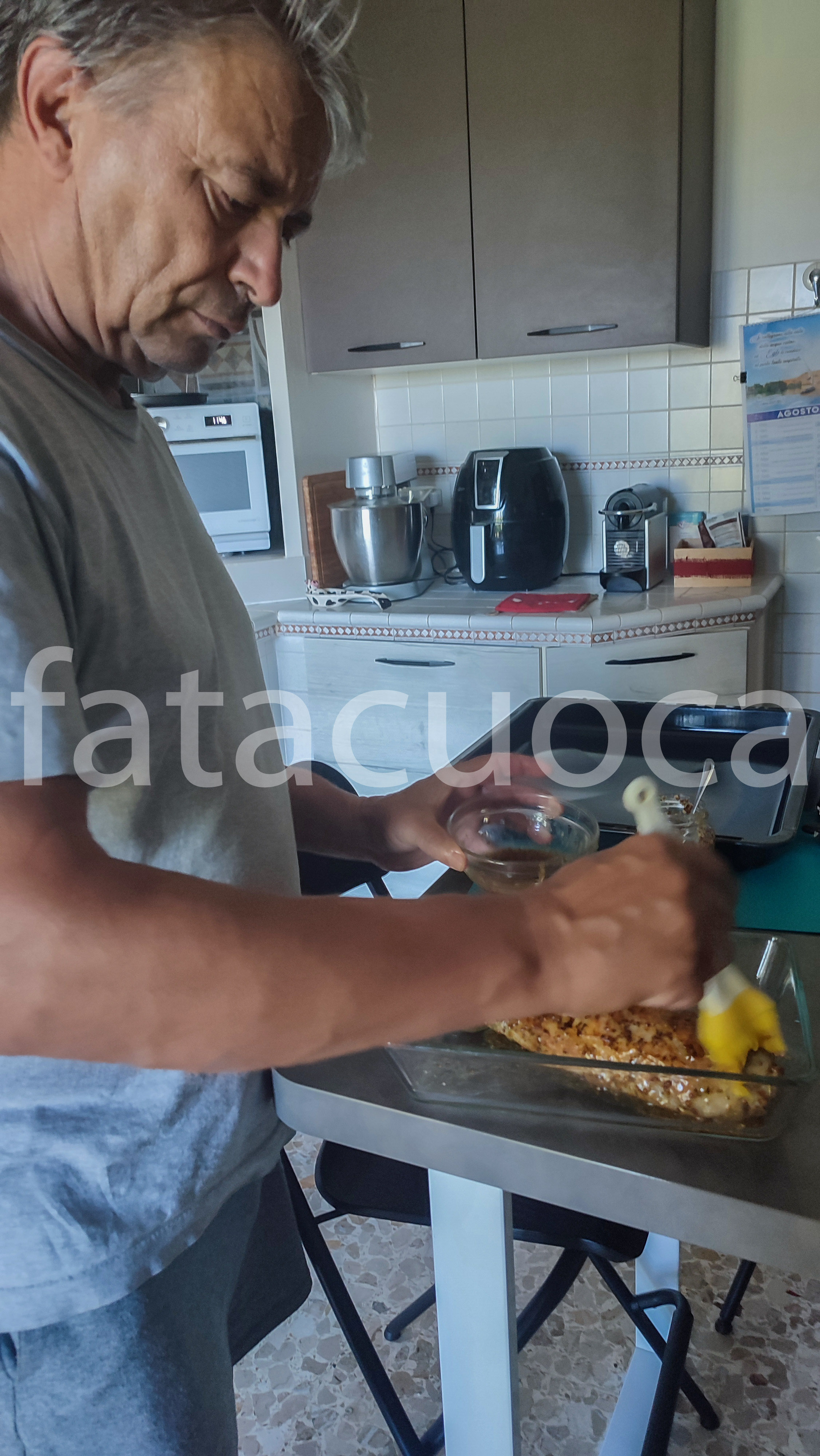 condirlo con il sale, il sale aromatico, il pepe e l’olio, massaggiarlo e lasciarlo riposare coperto anche 3 ore FUORI DAL FRIGORIFERO.