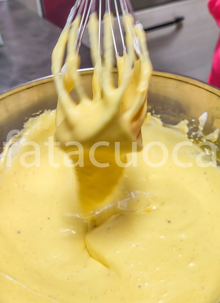 Per preparare la farcia: tagliare a bastoncino il guanciale e metterlo in una piccola padella a scaldare. Dividere il guanciale croccante dall’olio. In una ciotola amalgamare i tuorli, l’uovo, il pecorino, una piccola parte di olio del guanciale, il pepe pochissimo sale e cuocere a bagno maria per 6/ 7 minuti. Raffreddare e aggiungere la panna montata. Mettere in una sacca a poche e lasciarla raffreddare in frigorifero.