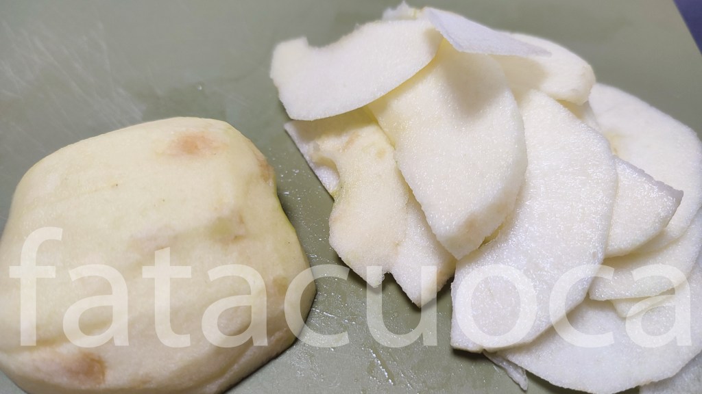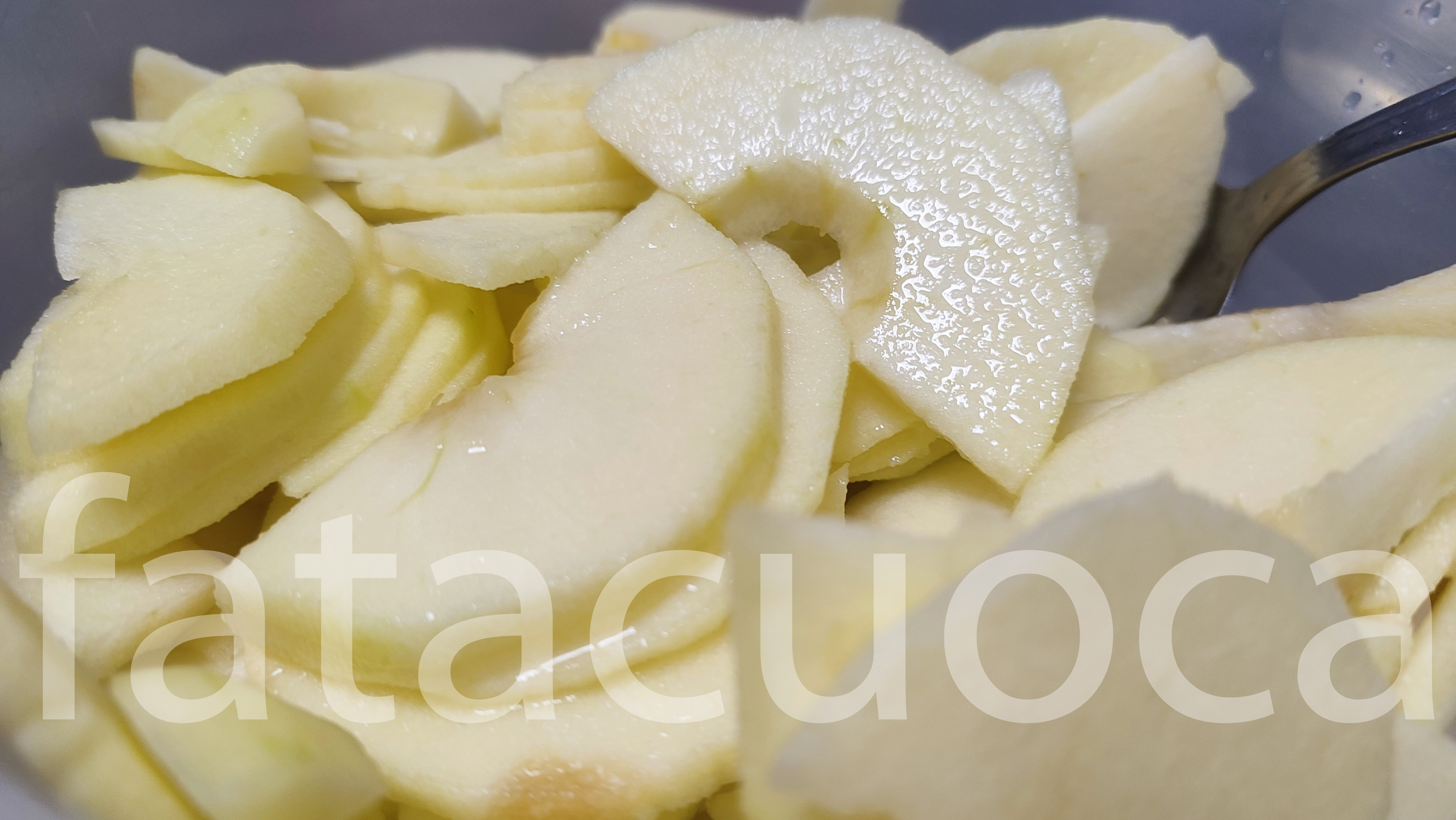 Tagliate le mele a fettine sottili bagnatele con il succo di limone mescolate bene e tenete da parte.