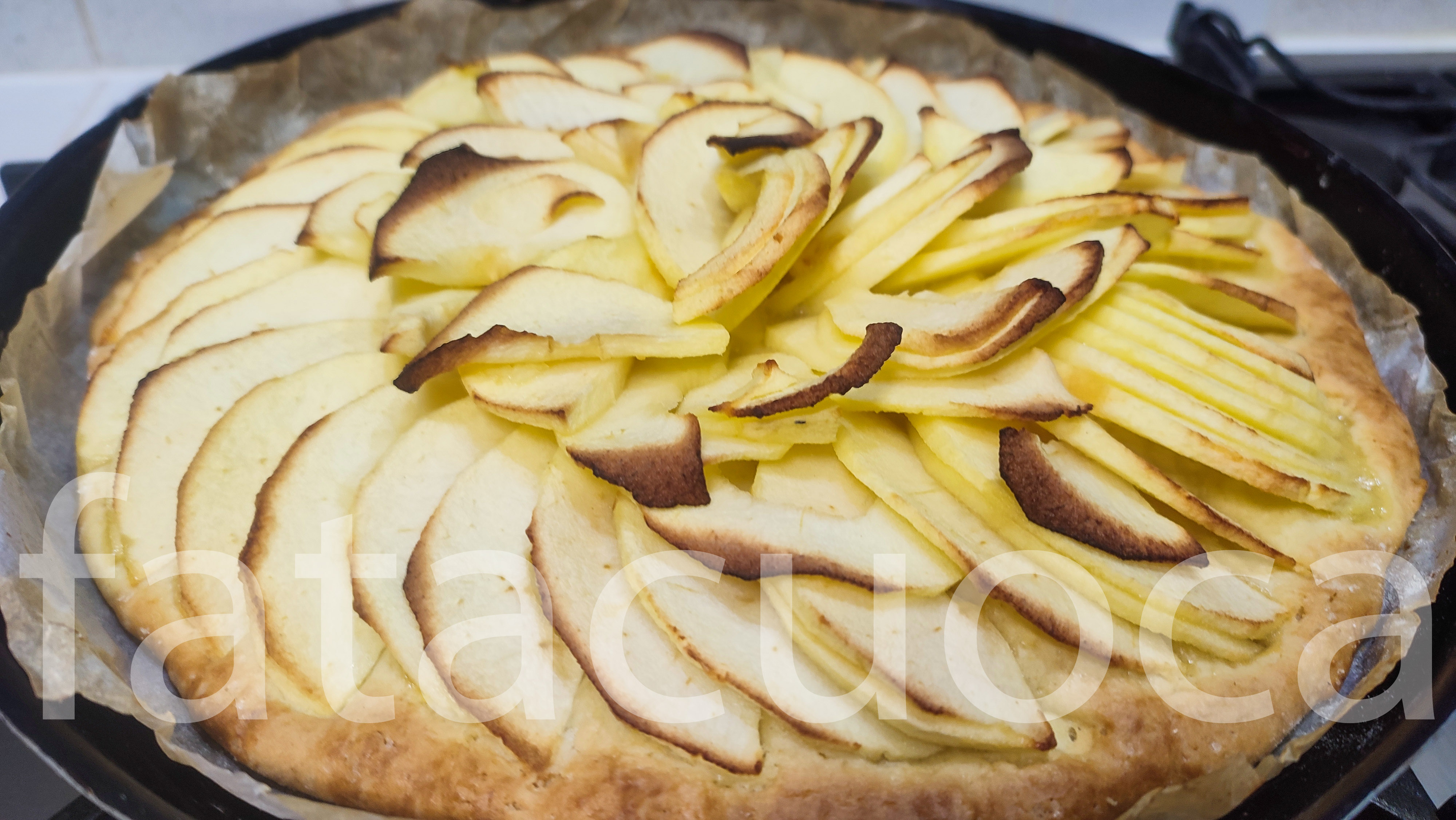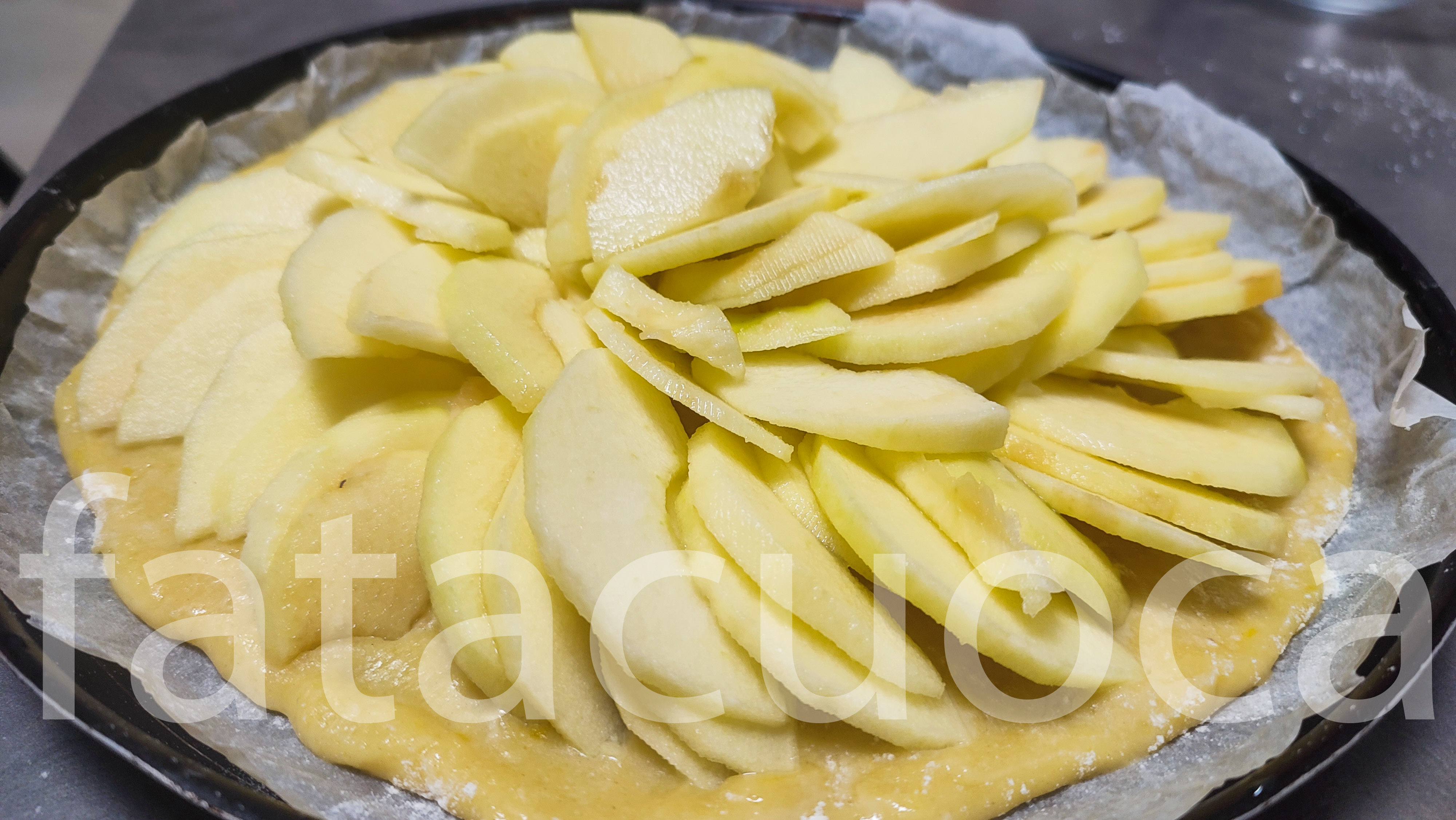 Adagiate sul fondo le fettine di mela pressando bene mettete a cuocere nel forno caldo a 170° per circa 30 minuti .